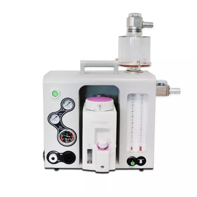 1. Appareil d'anesthésie portable approuvé CE 2. Compact, léger et portable, peut être transporté par un étui à tige de traction, posé sur une table et assemblé sur le chariot. 3. Convient aux petits animaux, un absorbeur Jackson ou Bains est disponible 4. Spécialement conçu pour s'adapter à un faible débit. Barre Selectatec et dispositif de montage de vaporisateur à changement rapide 5. Conception de circuit respiratoire étanche à l'air professionnel, fournit une anesthésie au gaz stable, économise la consommation de gaz d'anesthésie, pour assurer une salle d'opération et un environnement de laboratoire propres. 6. Bidon de chaux sodée externe et réutilisable, surveille et remplace facilement la chaux sodée. 7. Avec fonction de rinçage à l'oxygène pour garantir la demande d'anesthésie clinique et la demande d'approvisionnement en oxygène. 8. Avec soupape de réduction de pression APL pour éviter que la pression ne blesse l'animal, assure la sécurité de l'animal. 9. Système d'évacuation des eaux usées. 10. Soupape d'inspiration et d'expiration visible. 11. Peut être mis à niveau librement vers un débitmètre d'oxygène et de N2O ou d'oxygène et d'air. Support de module avec matériau médical en polyester avec technologie de pulvérisation supérieure, haute résistance et poids léger. 12.Avec étui de transport, pratique à emporter et à transporter 13.Facile à démonter et à assembler tous les composants, pratique pour le nettoyage et l'entretien.